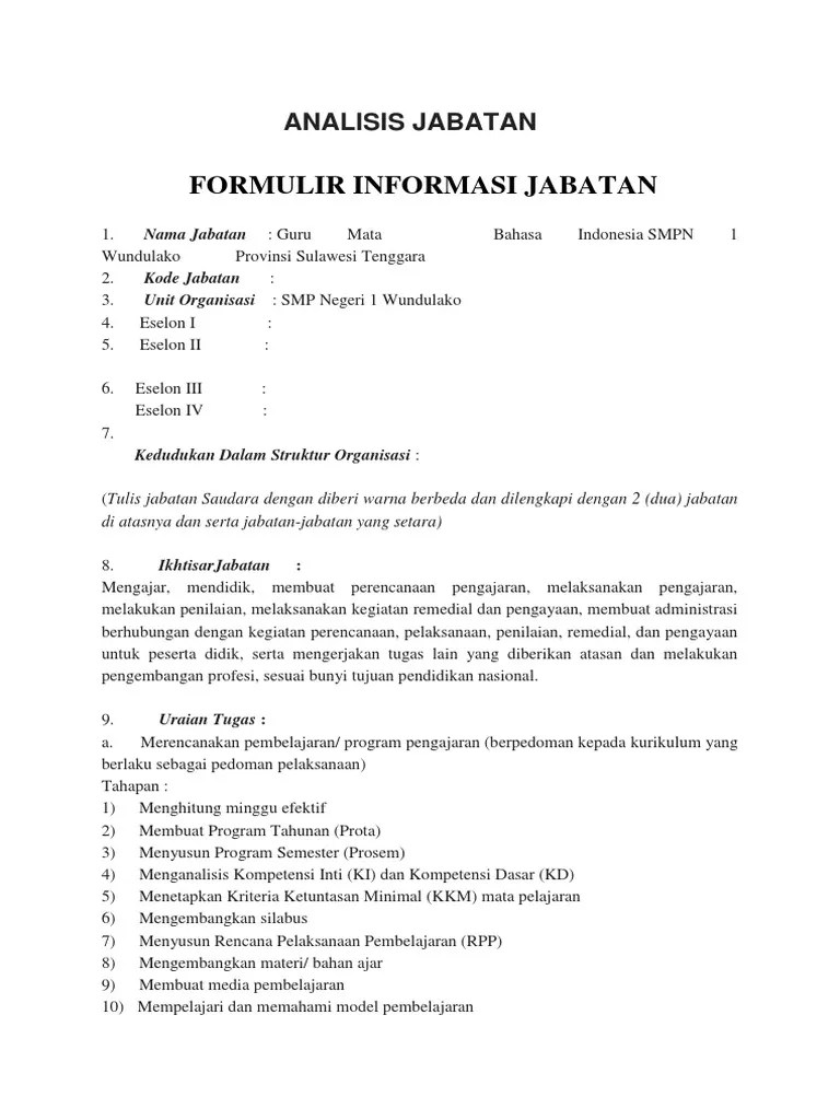 Contoh Analisis Beban Kerja Guru Kelas : Format Analisis Jabatan Guru - Jumlah kebutuhan pns diisi berdasarkan hasil analisis beban kerja, sampit,.